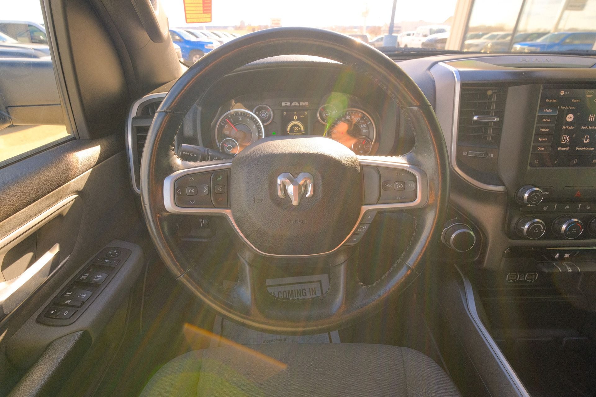 2nd Row In Floor Storage Bins, 4G LTE Wi-Fi Hot Spot, 8.4 Touchscreen Display, Alloy wheels, Apple CarPlay, Auto-Dimming Exterior Driver Mirror, Auto-Dimming Rear-View Mirror, Big Horn Badge, Big Horn Level 1 Equipment Group, Black Exterior Mirrors, Black Premium Power Mirrors, Bluetooth® Handsfree Phone & Audio, Brake assist, Class IV Receiver Hitch, Connectivity - US/Canada, Convex Wide-Angle Exterior Mirror Insert, Electric Shift-On-Demand Transfer Case, Exterior Mirrors Courtesy Lamps, Exterior Mirrors w/Heating Element, Exterior Mirrors w/Supplemental Signals, For Details, Visit DriveUconnect.com, For More Info, Call 800-643-2112, Front Fog Lamps, Glove Box Lamp, Google Android Auto, GPS Antenna Input, Heated door mirrors, Heated Front Seats, Heated Steering Wheel, Integrated Center Stack Radio, Leather steering wheel, ParkView Rear Back-Up Camera, Passenger Sun Visor w/Illuminated Mirror, Power-Folding Mirrors, Quick Order Package 23Z Big Horn, Radio: Uconnect 5 W w/8.4 Display, Rear 60/40 Folding Seat, Rear Dome w/On/Off Switch Lamp, Rear Power Sliding Window, Rear Window Defroster, Remote keyless entry, Remote Start System, SiriusXM Satellite Radio, Split folding rear seat, Steering wheel mounted audio controls, USB Host Flip. Diamond Black Crystal Pearlcoat 2023 Ram 1500 Big Horn/Lone Star 4WD 8-Speed Automatic 3.6L V6 24V VVT