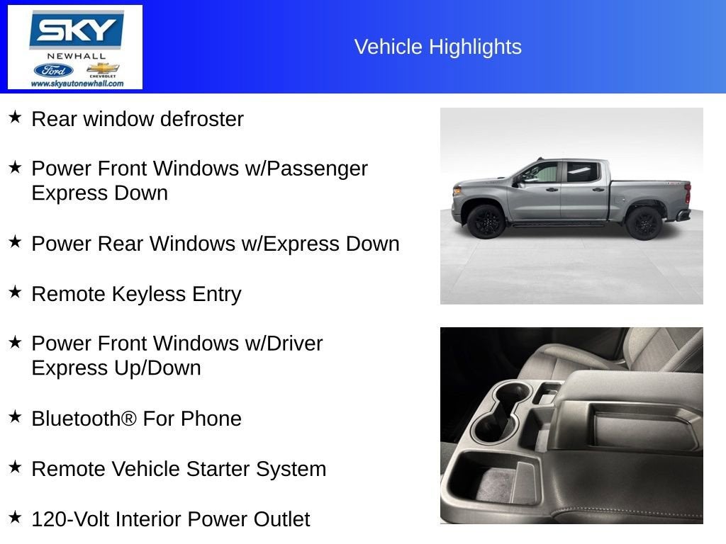 Inside, the Silverado Custom offers a comfortable, practical cabin designed to make every drive enjoyable. There’s plenty of room for passengers to stretch out, smart storage for your gear, and intuitive technology that keeps you connected without feeling complicated. The layout is straightforward and driver-focused, making it easy to settle in and focus on the road ahead.