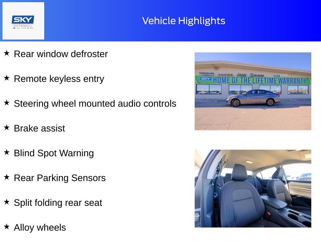 Experience a perfect blend of style, comfort, and performance with the 2025 Nissan Altima 2.5 SV. Designed for drivers who appreciate a smooth, confident ride, this Altima welcomes you with a thoughtfully crafted interior that feels both modern and inviting. Its sleek exterior lines and refined design make a statement wherever you go, while the cabin offers a spacious, serene environment ideal for commuting, road trips, or running errands around town. With intuitive technology at your fingertips and a focus on comfort and connectivity, the 2025 Altima 2.5 SV turns every drive into a more enjoyable and effortless experience.